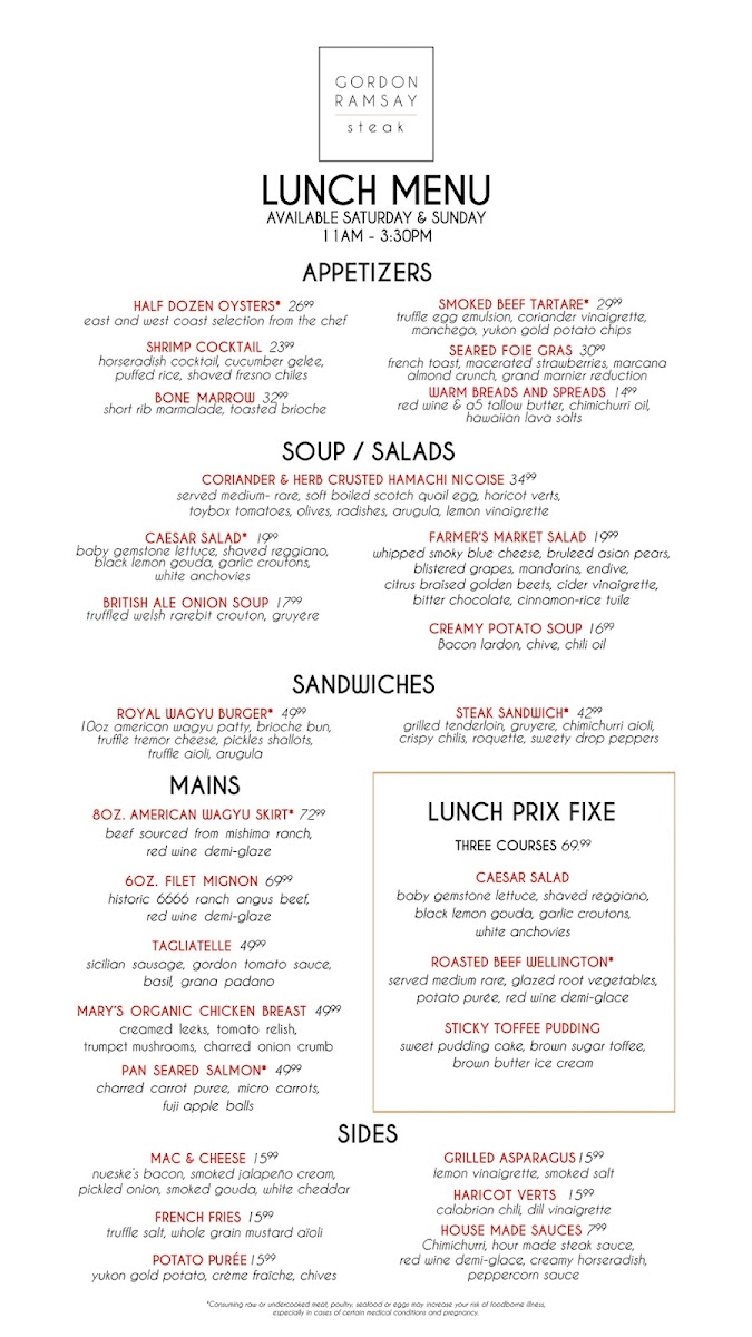 The menu at Gordon Ramsay Steak offers a refined selection of thoughtfully prepared dishes that balance classic steakhouse favorites with modern touches. This is a place where you can savor everything from perfectly cooked prime beef and wagyu sliders to comforting starters like British style onion soup and shrimp cocktail. Alongside hearty mains, the menu features distinctive sides such as broccolini and potato purée that complement each main dish without overpowering it.